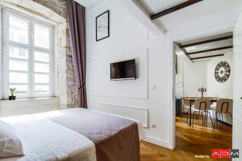 Stan od 60 - tak m2 trebalo je urediti za najam... visina 4,42 m. Želje investitora su bile: ja bi dva apartmana jedan dvosobni, jedan jednosobni, ja bi galeriju, ja bi kadu u D.B., male kuhinje ali da sve stane i veliki frižider i perilica i mikrovalna ..... itd. Sviđa mi se ovaj dizajn, a i ovo mi je lijepo, i ovo (pokazivaju nam slike..).... Uzeli smo neke ideje od Poljaka,Španjolaca, Francuza, Istrijana, neke svoje zamisli pretočili u djela i napravili ovo... Napravivši galeriju od 30 - tak kvadrata, dobili smo prostor za dva dvoetažna apartmana. Prvo što me oduševilo u ovoj priči je parket - Francuski Vez - vjerojatno prvi postavljen u ovom gradu - Mate, Mate hvala ti na ovom uradku, kapa dolje. Nadalje pituri - pardon Doktori soboslikari, štukateri, - vrhunski ste - svaka vam čast, nemojte se ljutiti svi ostali koje nisam istaknuo a koji ste sudjelovali u ovoj izvedbi jer ste i Vi definitivno odradili VRHUNSKI POSAO, Tome, Dino, Željko, Nikola, Danijel, Dejan, Lucijan, Ivan, Ivana, Valentina, Križo, Marko ..........puno Vas je stvarno ste TOP ekipa. Investitori su zadovoljni - znam da jesu - vidi im se sjaj u očima dok pričaju o ovim Apartmanima - Hvala Vam što ste nam omogućili da napravimo ovako nešto lijepo...Kako okarakterizirati ovaj uradak - sad kad je gotovo - recimo ovako: svaki put kad uđem u ovaj prostor, naježim se - vjerujte mi - tako izgleda. Tko je ovo napravio - pitam se - pitaj Boga, vjerojatno i on ima prste u svemu ovome, i na kraju ona koja na svojim leđima nosi mene, (a znate i sami da nisam perce), djecu, četri kantuna kuće, i sudjeluje kao i ja u cijeloj ovoj priči......tnx Quince.......